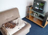 sowie einen Wohnteil mit gemütlicher Couch und Tisch. |